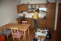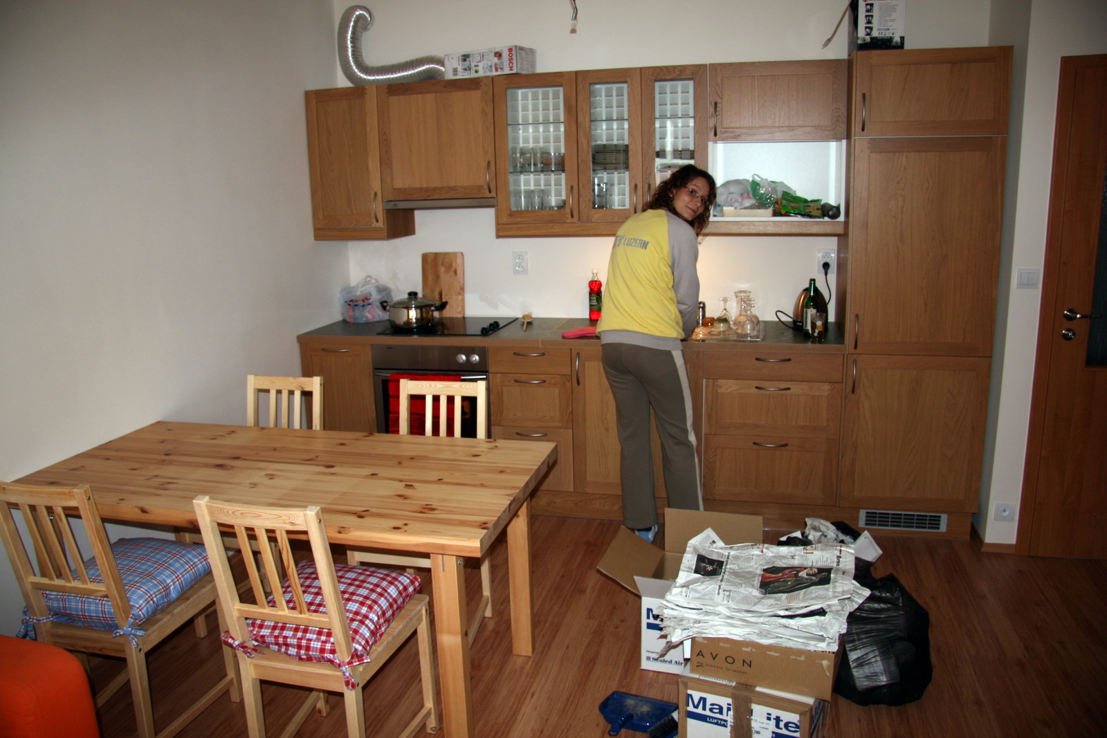 Kamarád nám půjčil auto i s kamarádem řidičem a tak bylo za dopoledne přestěhováno. V neděli jsme vybalili většinu věcí, ale práce je ještě mraky (obložit kuchyňskou linku, konzole na závěsy, atd ...).Radost z nového a vlastního bytu nám pár dní kazil nefungující společný kotel, ale i to je již minulostí. Pomalu si také začínáme zvykat kdy jezdí autobusy, nebo spíš jak málo jezdí. Přeci jen už nejsme v Praze...