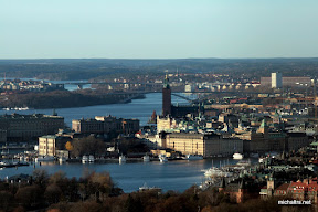 Na pondělí jsme si naplánovali do prohlédnout vše, co jsme v sobotu nestihli. A to uličky Gamlastan, skansen a věž Kaknastornet. Do přístavu ve Stockholmu připlouváme v půl sedmé. Krátké rozkoukání, začíná se pomalu rozednívat a tak vyrážíme. Jdeme podél pobřeží ke Gamlastanu. Před ním sedáme na loď (MHD) a za 30 švédských korun plujeme na ostrov, kde je skansen. Pochvalujeme se, jak jsme to krásně vymysleli, jak vše krásně stihneme. U skansenu jsme přesně v 8:00 ale problém, brány otevírá až v 10. Co teď? Je krásně modro, tak jdeme procházkou parkem Djurgarden ke věži Kaknastornet. Po klidné chůzi jsme v devět u věže, otevírá v 10 :-(. Každý máme v batohu nějaká rezervní pivka a zbytek Bechera a pana Tulamora. Jak tak popíjíme, vyloupne se z křoví Franta, zjišťuje že věž otevírá až v 10, tak zas někde mizí. Rychle se propíjíme do desáté hodiny a míříme nahoru na věž. Krásně svítí slunce, ale focení to moc nepřeje. Dvojité sklo nebylo zrovna antireflexní, takže všude spousta odlesků. Ale i tak teláčkem pořizuji několik pěkných fotek Stockholmu a jsem rád, že jsem ho netáhl zbytečně :-). Z věže jedem busem do centra, procházíme se v uličkách Gamlastanu a kolem druhé odjíždíme z centrálního terminálu na letiště Skavsta. Utrácíme poslední koruny, sedáme do Boeingu 737-800 společnosti Ryanair a kolem 7 večer jsme na Ruzyni.