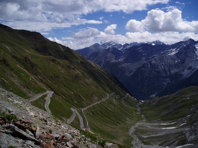 Letošní trasa je doslova napěchována vrcholy... ať již v podobě horských průsmyků, malebných údolí, nebo historických měst. Čeká na nás mnoho horských průsmyků s nadmořskou výškou přes 2000 m.n.m a hned mezi prvními je Stelvio pass patřící mezi TOP Alpské průsmyky. I když jsme jej v roce 2004 (ve složení Franta, Pája a já) již jednou zdolali, těším se moc. Před čtyřmi lety jsme jeli od Merana a těsně za vrchlom odbočili na Umbrail pass do Švýcarska. Letos pojedeme z jihu, tj. z Bormia do Merana. Stoupání by nemělo být tak náročné, ale nebudu předbíhat... přeci jen s nadmořskou výškou 2758 metrů je to 2. nejvyšší průsmyk v Alpách.