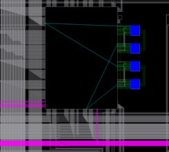 Pro měření na sběrnici uvnitř FPGA jsme napsali jednoduchý design a použili Xilinx PACE pro přiřazení pinů k signálum. Poté jsme spustily Place & Route. Výsledné zpoždění na sběrnici je nejlépe vidět z "Asynchronous Delay Report".