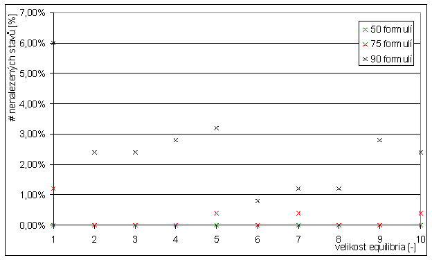 Graf: Závislost # nenalezených stavů na velikosti equilibria