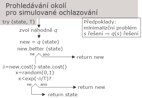 Z pokro�il�ch iterativn�ch metod jsem si vybral algoritmus simulovan� ochlazov�n�. Je pops�n "v�vojov�mi diagramy" na n�sleduj�c�ch obr�zc�ch.