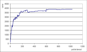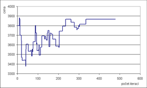 - Po��te�n� teplotu je vhodn� volit jako funkci velikosti instance. V experimentu d�v� nejlep�� v�sledky n * 2. Na dostuduj jsem na�el tento vztah: M * suma(ceny) / (N * suma(v�hy)), kter� d�v� podobn� v�sledky.