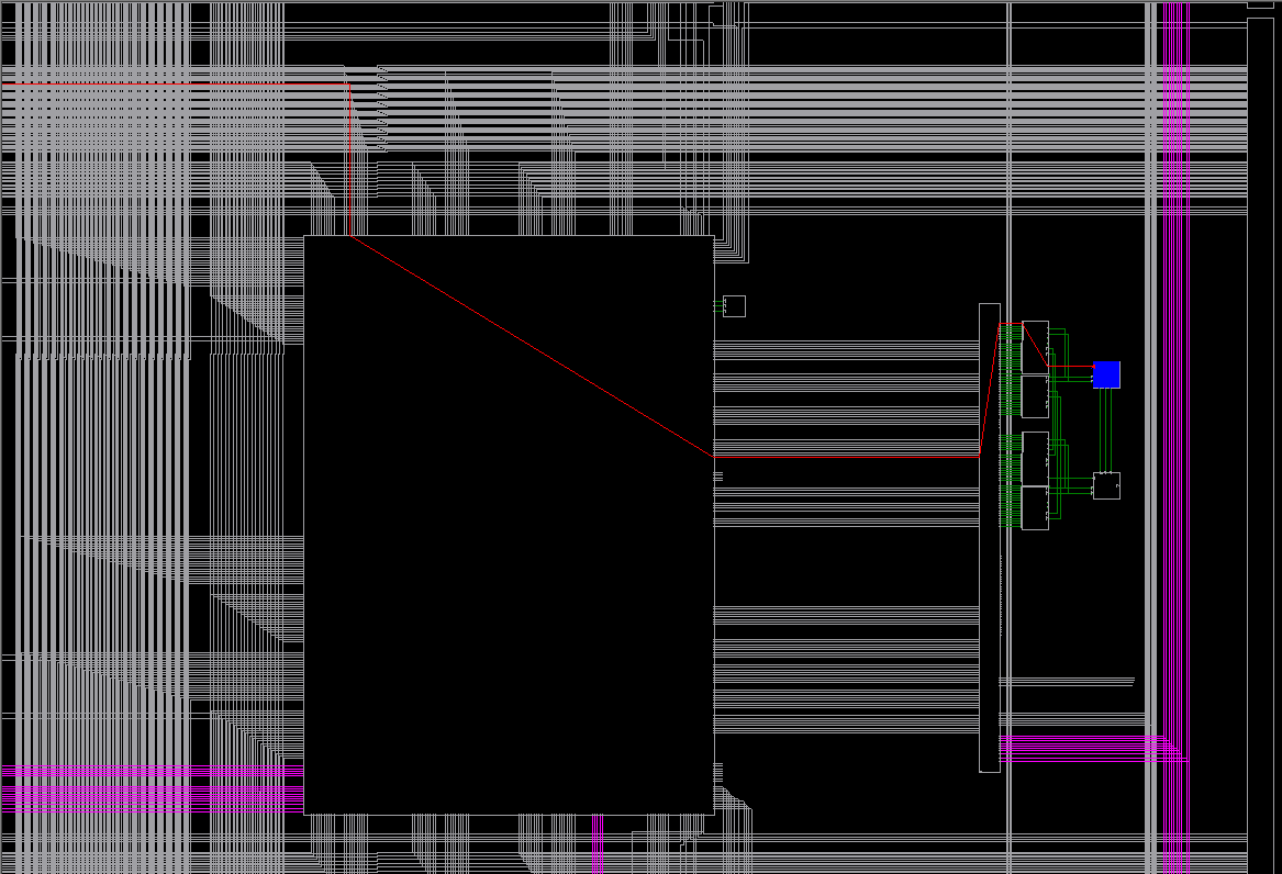 Pro měření na sběrnici uvnitř FPGA jsme napsali jednoduchý design a použili Xilinx PACE pro přiřazení pinů k signálum. Poté jsme spustily Place & Route. Výsledné zpoždění na sběrnici je nejlépe vidět z "Asynchronous Delay Report".