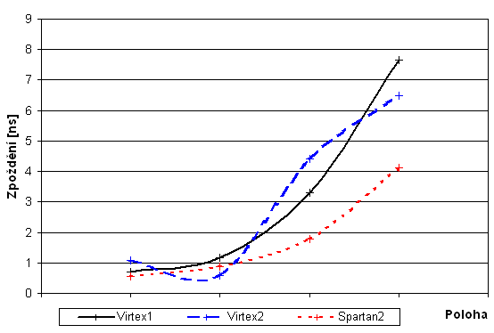 Pozorujte realizaci a zjistěte dynamické vlastnosti (stat. časová analýza) realizace sběrnice různé délky na architektuře Xilinx Viretx.